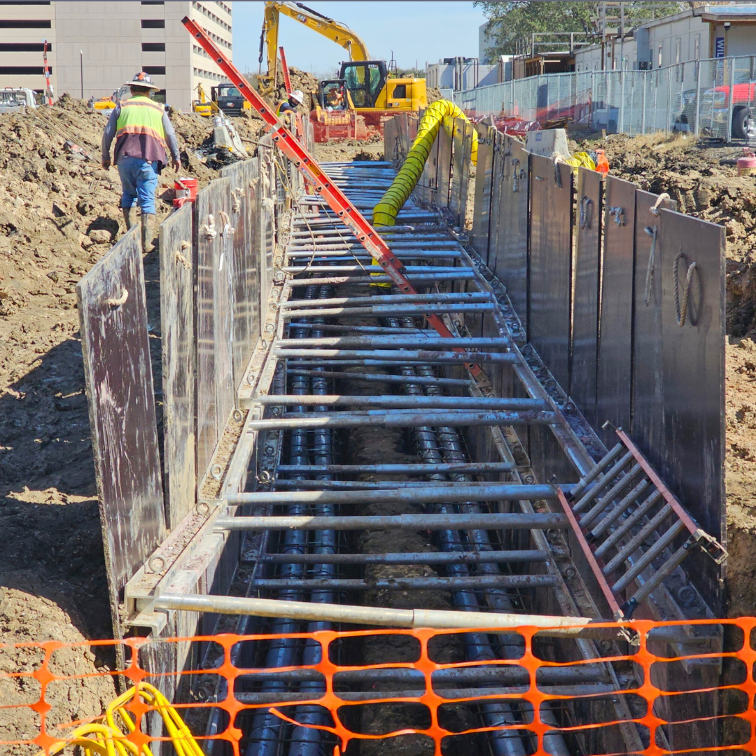 Slide-Rail Systems deliver exceptional shoring protection for a wide array of applications, such as utility installations, bore pits, point repairs, tank pits, vaults, and shafts. With the flexibility to configure various combinations of corner and linear rails, along with high-strength panels, the Slide-Rail System can handle excavations of linear, square, or rectangular shapes, reaching depths of up to 32 feet.